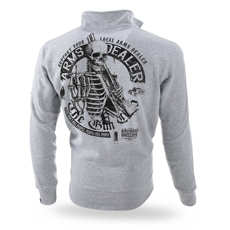 - Model bluzy z zamkiem oraz wysokim kołnierzem. Dwie kieszenie na froncie, na lewym rękawie mała metka z logo Dobermans Aggressive.