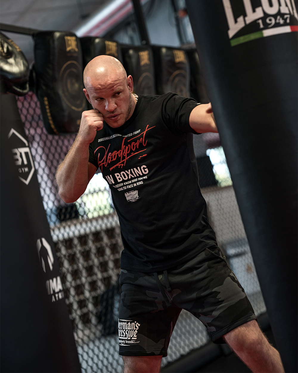 Wykonana z bawełny o wysokiej gramaturze. Na lewym rękawie wszyta mała metka z logo marki. Głównym motywem koszulki jest napis Bloodsport z delikatnym dodatkiem kropli krwi. Koszulka w stonowanym stylu z mocnym przekazem.