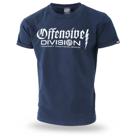 Wąski ściągacz przy szyi poprawia komfort noszenia. Koszulka oznaczona metkami Dobermans Aggressive. Na piersi znajduje się klasyczny wzór z linii Offensive. Grafika złożona z dwóch napisów. Obok znajduje się piorun. Z tyłu koszulki mniejszy nadruk, wzór to znak runiczny w kole. Wykorzystano efekt podniszczenia nadruku.