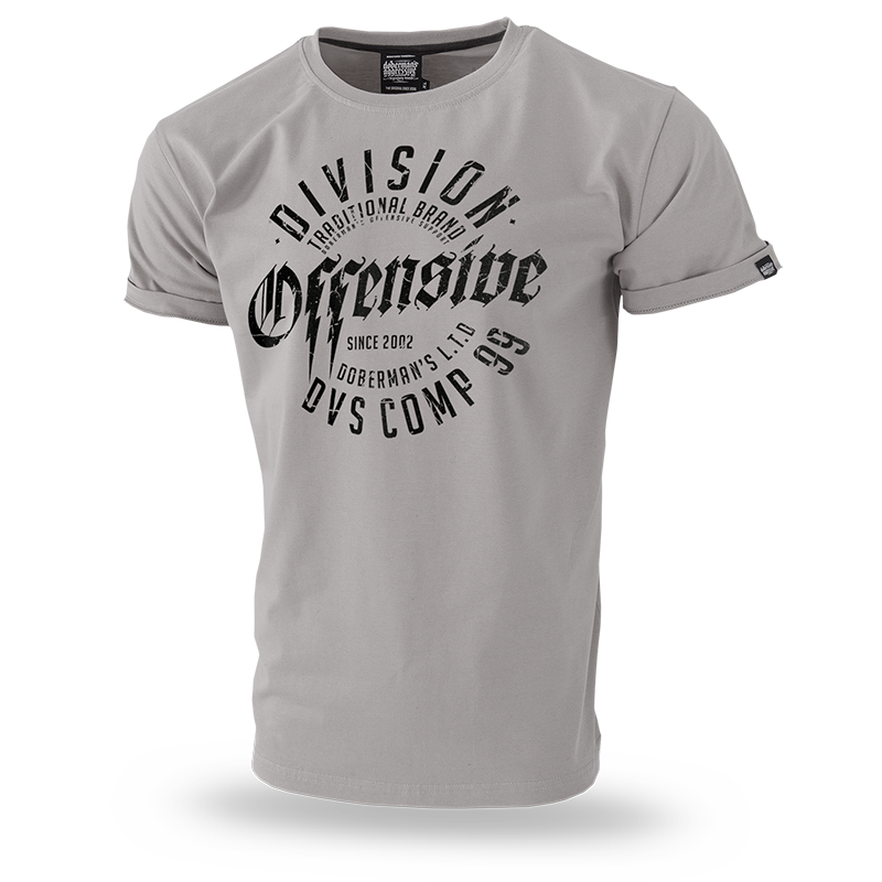 Pośrodku Offensive wykonane gotyckim fontem. Dookoła hasła Division, DVC COMP 99.Grafika w jednym kolorze. Na plecach mniejszy nadruk z dwoma piorunami. Odzież wykonana z wysokiej jakości bawełny o masie 200g. Koszulka z krótkim rękawkiem o klasycznym fasonie. Przy szyi wykończona wąskim ściągaczem który poprawia komfort użytkowania.