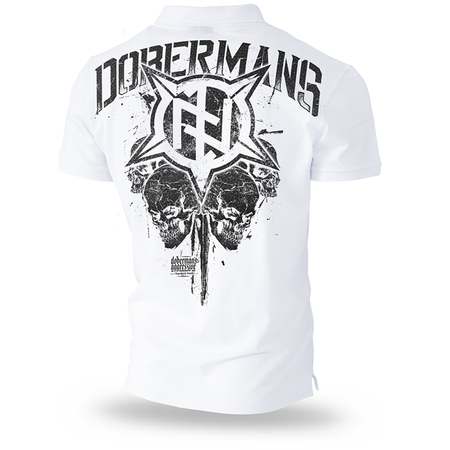 Nadruk z napisem Dobermans oraz runicznym symbolem marki. Element powielony na plecach w dużej skali. Dodano cztery czaszki. Koszulka wyprodukowana z wysokogatunkowej bawełny o masie 200g. Posiada krótki rękaw wykończony ściągaczem, kołnierzyk z trzema guzikami oraz prosty fason.