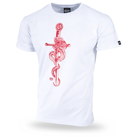 Odzież wykonana z bawełny o gramaturze 200g. Na lewym rękawku mała metka z logo Doberman’s Aggressive. Na przodzie koszulki znajduje się postać węża oplatającego miecz. Grafikę uzupełnia dopisek The Serpent’s Trail.