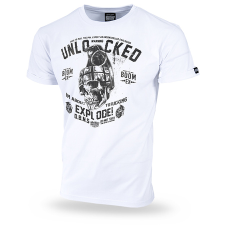Wykonana z bawełny o wysokiej gramaturze. Na lewym rękawie wszyta mała metka z logo marki. Model koszulki z charakterystyczną grafiką, czaszki w granacie i napisem „Unlocked Explode!” oraz logo marki Doberman’s. Na karku powielenie grafiki w mniejszym formacie.
