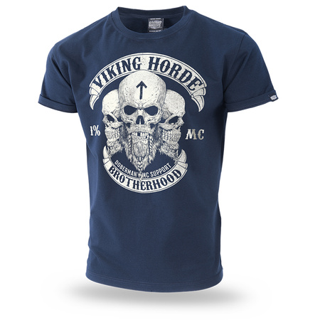 Posiada wąski ściągacz przy szyi który poprawia komfort użytkowania. Tkana metka z logo Dobermans Aggressive wszyta na dole lewego rękawka. Model z kolekcji Vikings. Na piersi grafika z trzema czaszkami. Jedna z nich na czole ma runiczny symbol. Hasła Viking Horde i Brotherhood wpisane w dwa duże banery. Z tyłu pionowa grafika z dwoma toporami wikingów. Nadruk w jednym kolorze.