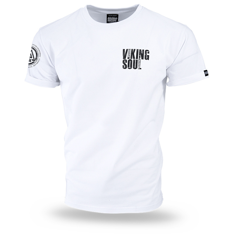 Na lewym rękawku mała metka z logo Dobermans Aggressive. Koszulkę wykonano z wysokojakościowej bawełny. Ozdobiona nadrukami w różnych miejscach. Na plecach duży nadruk z napisem Viking Soul. W napis zostały włożone symbole nawiązujące do mitologii nordyckiej. Na prawym rękawku symbole runiczne wpisane w koło. Lewa pierś została ozdobiona nadrukiem z nazwą modelu. Zastosowano efekt podniszczenia nadruku.