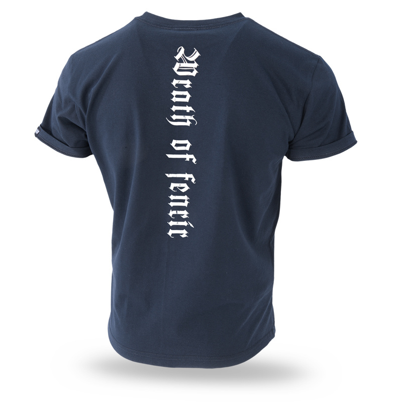 Na lewym rękawku mała metka z logo Dobermans Aggressive. Na przodzie dwukolorowa grafika groźnego wilka. Dookoła napisy wykonane gotycką czcionką oraz symbole runiczne i logo marki. Na plecach pionowy napis Wrath of fenrir.