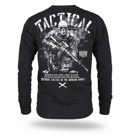 Z tyłu znajduje się dynamiczny nadruk przedstawiający szkielet z karabinem w kompozycji bojowej z hasłem „TACTICAL”. Poniżej umieszczono napis „Defensive tactics in the modern world” oraz dodatkowy tekst w języku angielskim. Z przodu widoczny jest mniejszy motyw graficzny z dwoma skrzyżowanymi nożami.
